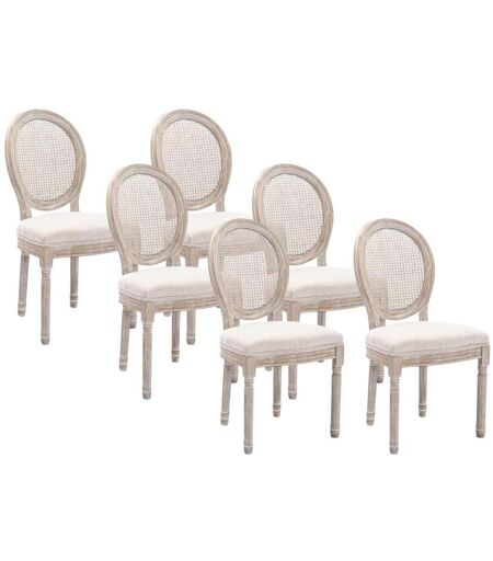 Lot de 6 chaises ANTOINETTE - Matières : Cannage tissu et bois d'hévéa - Coloris : Beige - Style : Charme vintage - Dimensions : L49 x P57,5 x H95 cm - Hauteur d'assise : 51,5 cm - Craquez pour le look intemporel de la chaise ANTOINETTE ! ...