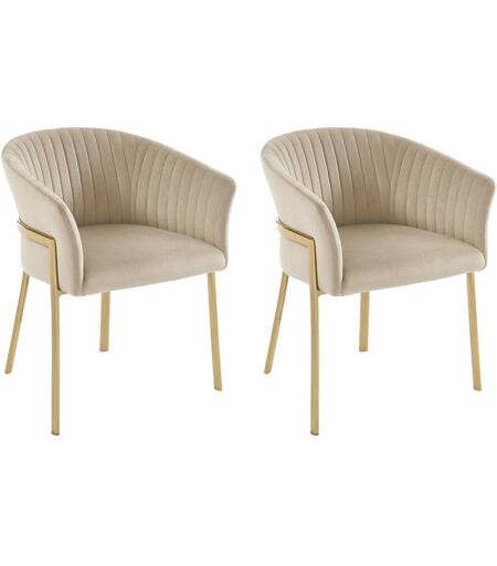 Lot de 2 chaises ZAOVA avec accoudoirs - Matières : Velours et métal - Coloris : Beige et doré - Style : Art déco - Dimensions : L61 x P57 x H76 cm - Hauteur de l'assise : 48,5 cm - Optez pour l'élégance et le glamour de la chaise ZAOVA ! ...