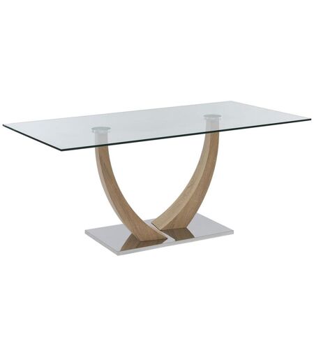 Vente-unique Table à manger 6 personnes en verre trempé, MDF et acier inoxydable - Naturel clair - MELODIE II
