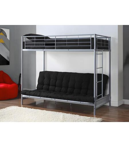 Vente-unique Lit mezzanine 90 x 190 cm - Avec banquette convertible - Métal - Argent + Futon noir - MODULO V