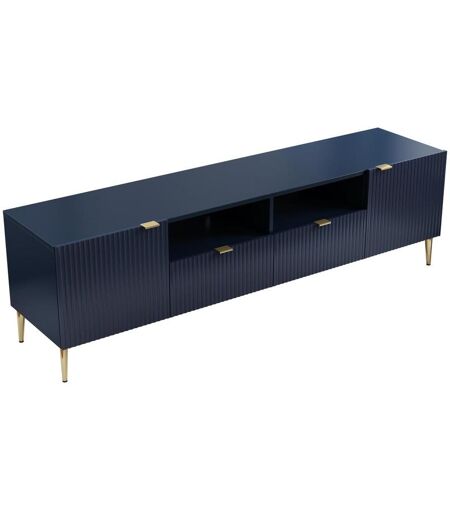 Meuble TV YESINIA avec 2 portes, 2 tiroirs et 2 niches - Matières : MDF, panneau de particules et acier - Coloris : Bleu et doré - Style : Art déco - Dimensions : L190 x P61 x H55 cm - YESINIA : un meuble TV épuré parfait pour meubler votre séjour ...