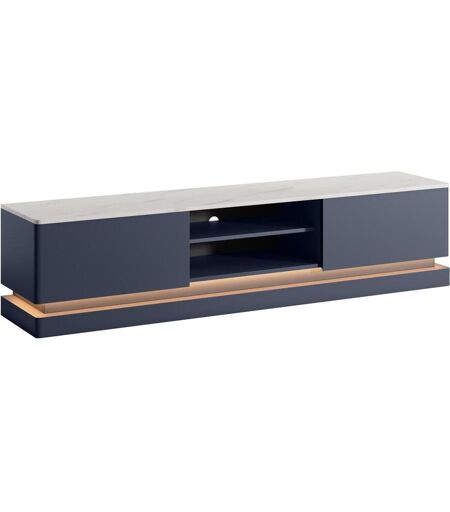Meuble TV 2 tiroirs et 2 niches avec LEDs en MDF - Bleu et effet marbre blanc - DEVIKA de Pascal MORABITO
