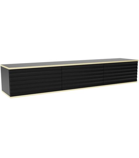 Meuble TV suspendu ALESAR avec 3 portes - Matières : MDF et panneau de particules - Coloris : Noir et Doré - Style : Art déco - Dimensions : L170 x P35 x H30 cm - Prenez de la hauteur avec le meuble TV suspendu ALESAR de Pascal Morabito ! ...