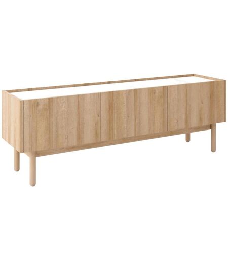 Meuble TV SITOLI avec 3 portes - Matière : Panneaux de particules et bois - Coloris : Naturel clair et effet marbre blanc - Style : Contemporain - Dimensions : L144 x P48 x H37 cm - Apportez de l'élégance à votre pièce avec la collection SITOLI ! ...