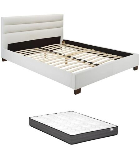 Vente-unique Lit 160 x 200 cm - Simili - Blanc + Matelas - FAUSTIN