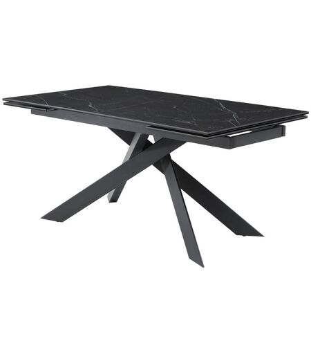 Vente-unique Table à manger extensible 6 à 10 personnes en céramique, verre trempé et métal - Effet marbre noir - COREMA de Maison Céphy