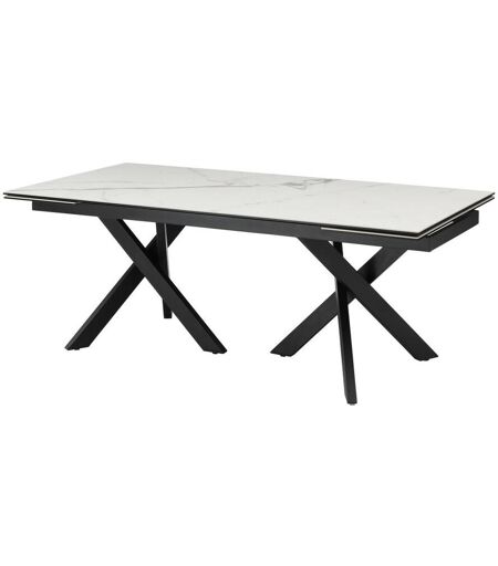 Vente-unique Table à manger extensible 8 à 12 personnes en verre trempé et céramique - Effet marbre blanc et noir - MARISO