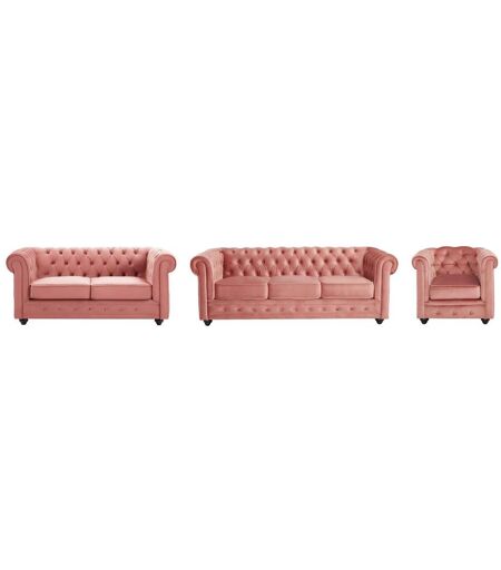 Vente-unique Canapés 3 places et 2 places et fauteuil en velours rose pastel CHESTERFIELD