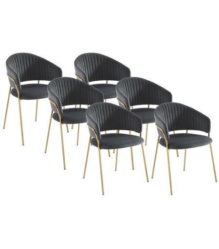 Lot de 6 chaises MADOLIA - Matières : Velours et métal - Coloris : Gris et doré - Style : Art déco - Dimensions : L55 x P55 x H81 cm - Hauteur d'assise : 48,5 cm - La chaise MADOLIA apportera glamour et élégance à votre séjour ! ...