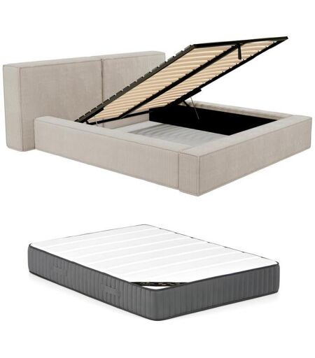 Lit coffre 180 x 200 cm - Velours côtelé - Beige + Matelas - TIMANO de Pascal Morabito