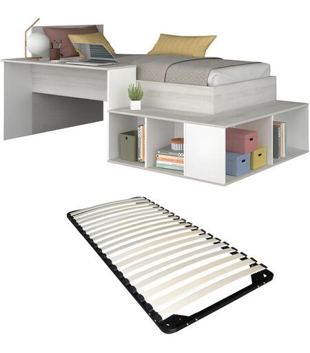 Vente-unique Lit combiné 90 x 200 cm avec rangements et bureau - Coloris : Naturel et blanc + Sommier - RIGALI