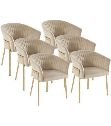 Lot de 6 chaises ZAOVA avec accoudoirs - Matières : Velours et métal - Coloris : Beige et doré - Style : Art déco - Dimensions : L61 x P57 x H76 cm - Hauteur de l'assise : 48,5 cm - Optez pour l'élégance et le glamour de la chaise ZAOVA ! ...