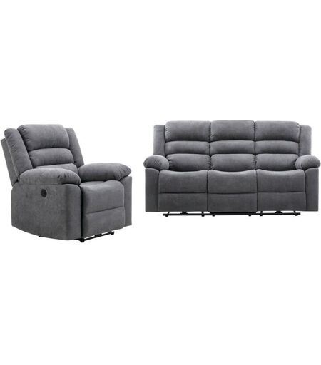 Vente-unique Canapé 3 places et fauteuil relax électrique en tissu gris BUROLO