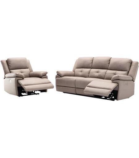 Vente-unique Canapé 3 places et fauteuil relax électrique en tissu taupe DOLENE