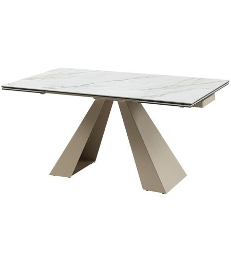 Table à manger extensible 6 à 10 couverts LOZIPA - Matières : Verre trempé, céramique et métal - Coloris : Effet marbre blanc et beige - Style : Design - Dimensions : L160/240 x P90 x H76 cm - LOZIPA de Maison Céphy : une table résolument tendance ! ...