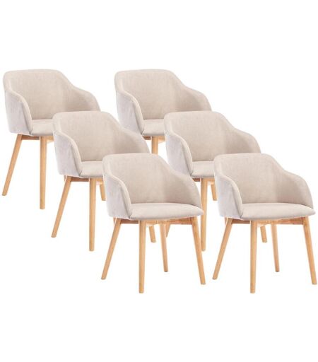 Vente-unique Lot de 6 chaises avec accoudoirs en tissu et bois d'hévéa - Beige - JELISA