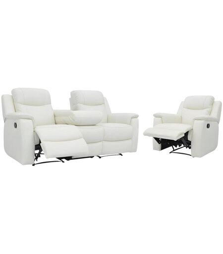 Vente-unique Canapé 3 places et un fauteuil relax EVASION en cuir - Blanc ivoire