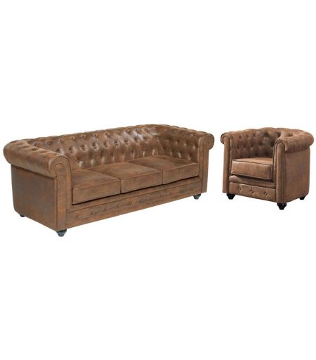 Vente-unique Canapé 3 places et fauteuil CHESTERFIELD en microfibre aspect cuir vieilli