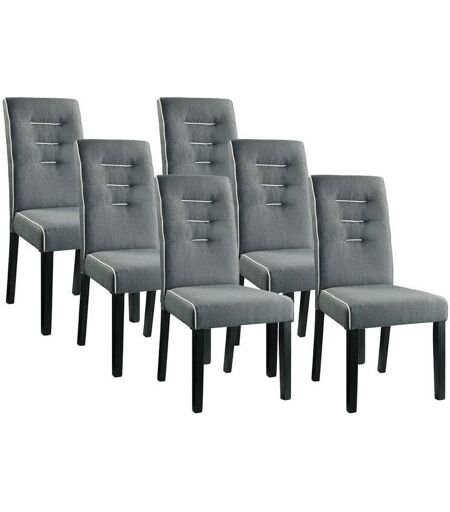 Vente-unique Lot de 6 chaises en tissu et bois d'hévéa - Gris - GABELLE
