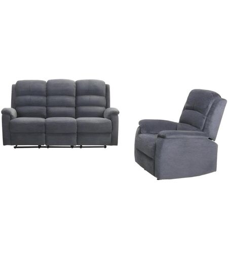 Canapé 3 places et fauteuil relax électrique en tissu gris. Canapé et fauteuil avec dossier inclinable. Dimensions : L187/171/86 x P95 x H103 cm. NEVERS ...