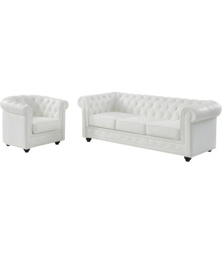 Vente-unique Canapé 3 places et fauteuil en cuir de buffle CHESTERFIELD - Blanc