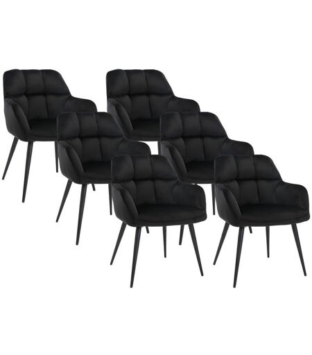 Lot de 6 chaises PEGA avec accoudoirs. Assise : Velours. Structure : Contreplaqué. Piétement : Métal noir. Coloris : Noir. Style: Charme. Dimensions : L58.5 x P62 x H78 cm. Assise : H47.5 cm. Glamour et confort sont au rendez vous avec les chaises PEGA ! ...