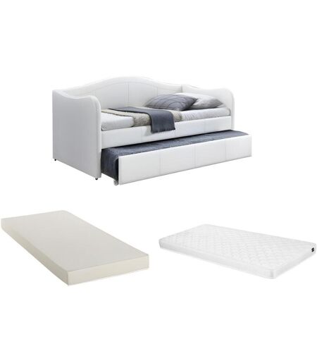 Vente-unique Lit banquette gigogne MATHILDE - 2 x 90 x 190 cm - Simili - Blanc + matelas
