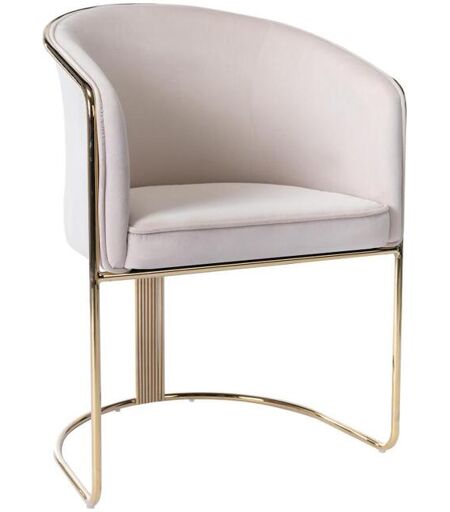 Chaise avec accoudoirs JOSETHE - Matières : Velours et métal - Coloris : Crème et doré - Style : Art Déco - Dimensions : L59,5 x P52,5 x H82,5 cm - Hauteur d'assise : 48 cm - Place au raffinement avec la chaise JOSETHE et sa structure art-déco ! ...