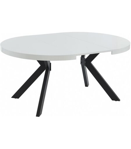 Vente-unique Table à manger extensible 4 à 8 personnes en MDF et acier - Blanc laqué et noir - KOMONI