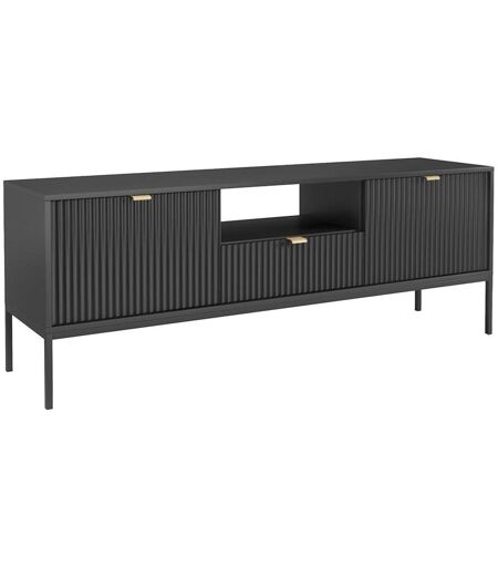 Meuble TV LIOUBA avec 2 portes, 1 tiroir et 1 niche - Matières : Panneau de particules et MDF - Coloris : Noir - Style : Contemporain - Dimensions : L154 x P39 x H56 cm - Profitez d'une collection design et au goût du jour avec LIOUBA ! ...