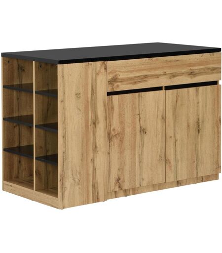 Ilot central de cuisine MEILI - Matière : MDF - 8 niches, 1 tiroir, 2 portes - Dimensions : L130 x P65 x H90 cm - Style : Contemporain - Coloris : Noir et Naturel - Partagez un moment convivial entre amis avec la table îlot central MEILI ! ...