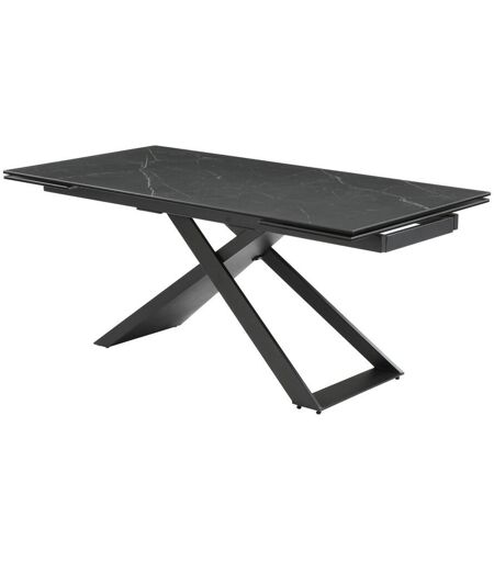 Table à manger extensible 6 à 10 couverts XERENA - Matières : Céramique, verre trempé métal - Coloris : Effet marbre noir - Style : Design - Dimensions : L180/260 x P90 x H76 cm - Autant de plaisir en petit et grand comité avec la table à manger XERENA ! ...