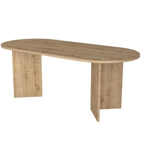 Table à manger TOPANIA 8 personnes - Matière : Panneau de particules - Coloris : Naturel clair - Style : Contemporain - Dimensions : L200 x P90 x H74.7 cm - Laissez-vous séduire par les courbes arrondies de la collection TOPANIA ! ...