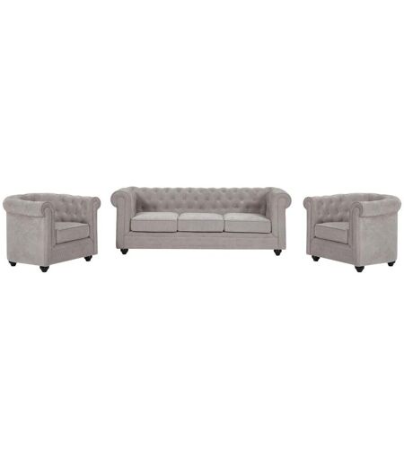 Vente-unique Canapé 3 places et 2 fauteuils en tissu gris CHESTERFIELD
