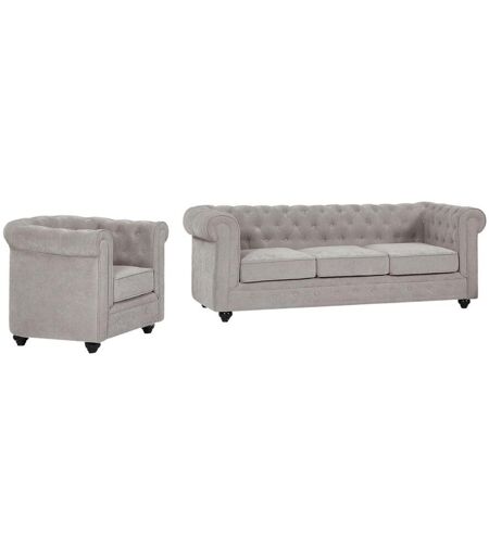Vente-unique Canapé 3 places et fauteuil en tissu gris CHESTERFIELD