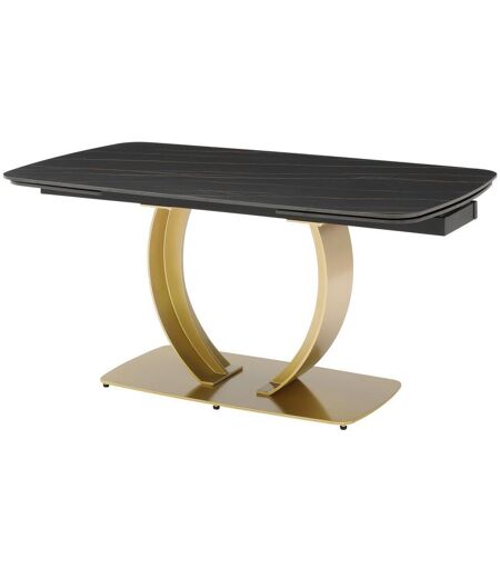 Vente-unique Table à manger extensible 6 à 10 personnes en céramique et métal doré - Effet marbre noir - OLIFIA de Maison Céphy