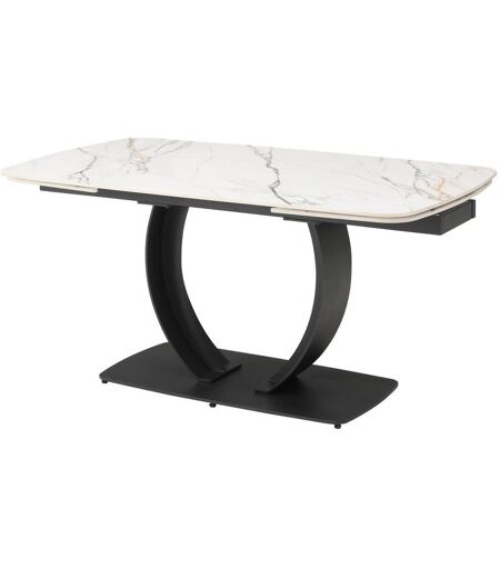 Vente-unique Table à manger extensible 6 à 10 personnes en céramique et métal noir - Effet marbre blanc - OLIFIA de Maison Céphy
