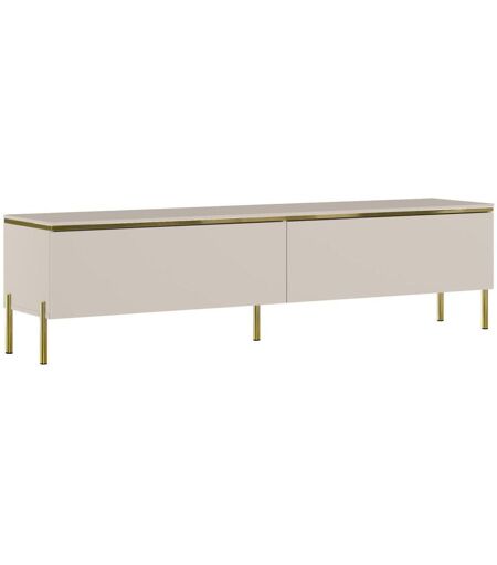 Meuble TV VUKIA avec 2 portes - Matières : Panneau de particule - Coloris : Beige et doré - Style : Contemporain - Dimensions : L180 x P39.6 x H46.8 cm - Alliez élégance et glamour avec la collection VUKIA ! ...