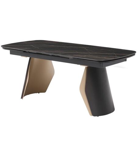 Table à manger extensible 6 à 10 personnes ZINORIA - Matières : Céramique, verre trempé et métal - Coloris : Effet marbre noir et doré - Style : Design - Dimensions : L180/260 x P90 x H76 cm - Succombez au prestige de la table ZINORIA ! ...