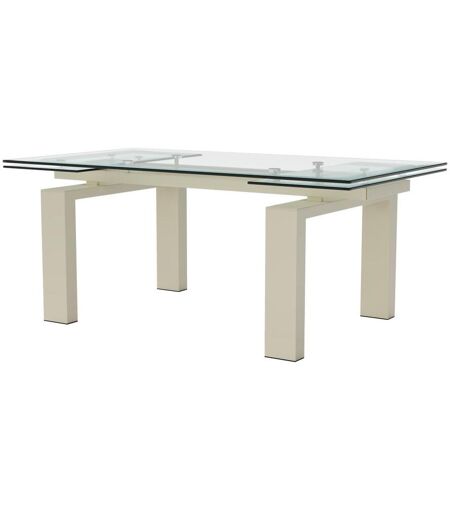 Table à manger extensible 8 à 10 personnes LUBANA - Matières : Verre trempé et métal - Coloris : Transparent et Beige - Style : Design - Dimensions : L180/270 x P100 x H75 cm - Recevez en grand, avec la table extensible LUBANA ! ...