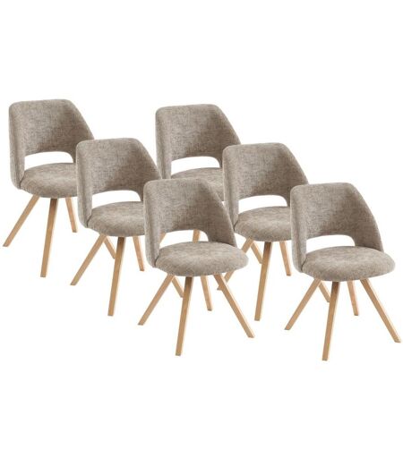 Vente-unique Lot de 6 chaises en tissu et bois d'hévéa - Taupe - VESIANI