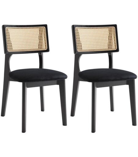 Vente-unique Lot de 2 chaises en velours, effet rotin et bois d'hévéa - Noir - CALENYA