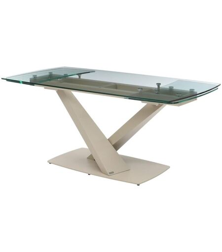 Table à manger extensible 6 à 10 couverts MALATA - Matières : Verre et métal - Coloris : Transparent et beige - Style : Design - Dimensions : L180/260xP90xH76cm - Choisissez la flexibilité avec la table MALATA ! ...