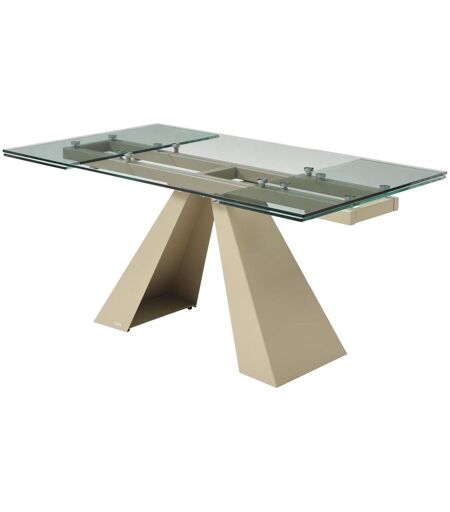 Vente-unique Table à manger extensible 6 à 10 personnes en verre trempé et métal beige - Transparent - LOZIPA de Maison Céphy