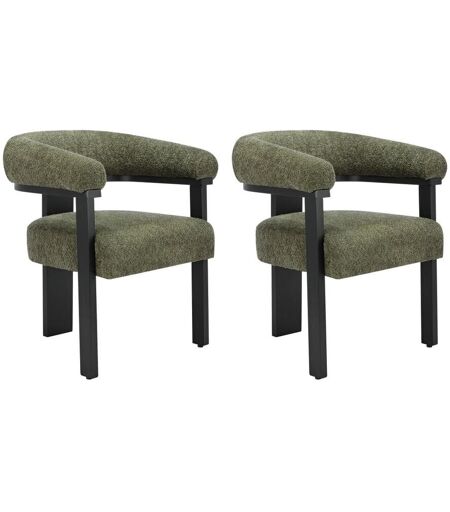 Lot de 2 chaises LIVELIA avec accoudoirs - Matières : Tissu bouclette et bois d'hévéa - Coloris : Kaki et noir - Style : Design - Dimensions : L64 x P60 x H78 cm - Hauteur d'assise : 48 cm - Pour un séjour assurément design, adoptez les chaises LIVELIA ...