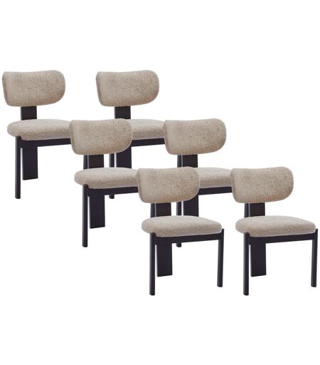 Lot de 6 chaises WILANA - Matières : Tissu bouclette et bois d'hévéa - Coloris : Taupe et Noir - Style : Design - Dimensions : L56 x P60 x H85 cm - Hauteur d'assise : 49 cm - Laissez-vous emporter par le design de la chaise WILANA ! ...
