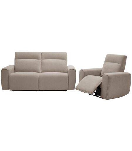 Vente-unique Canapé 3 places et fauteuil relax électrique en tissu beige LORGITA