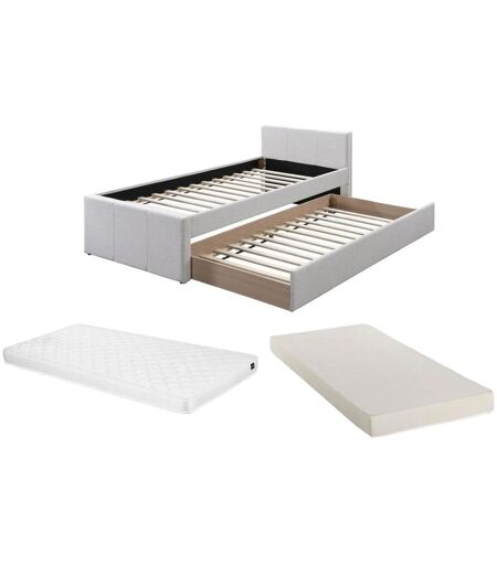 Vente-unique Lit gigogne 90 x 190 cm - Tissu - Beige + Matelas - DORITALO