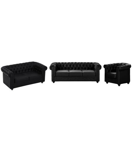 Vente-unique Canapés 3 places, 2 places et fauteuil en simili noir CHESTERFIELD