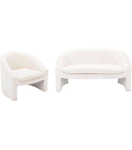 Vente-unique Canapé 2 places et fauteuil en velours côtelé crème OSSANA